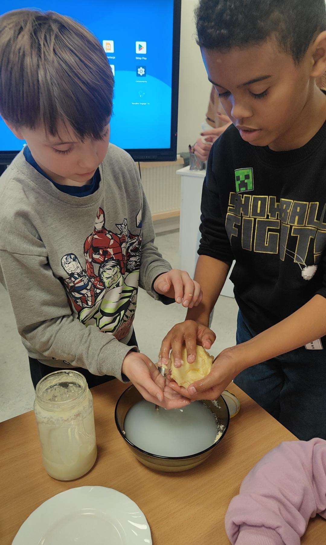 Uczniowie z klasy 3a jednogłośnie uznali, że nowoczesna szkoła jest znacznie fajniejsza niż ta, do której uczęszczali ich dziadkowie… Ale była jedna kwestia, której pozazdrościliśmy naszym dziadkom i babciom… Świeże, własnoręcznie ubite, masełko na pajdzie chrupiącego chleba… A że z naszymi nauczycielami nie ma rzeczy niemożliwych… Klasa 3a własnoręcznie zrobiła… masło!